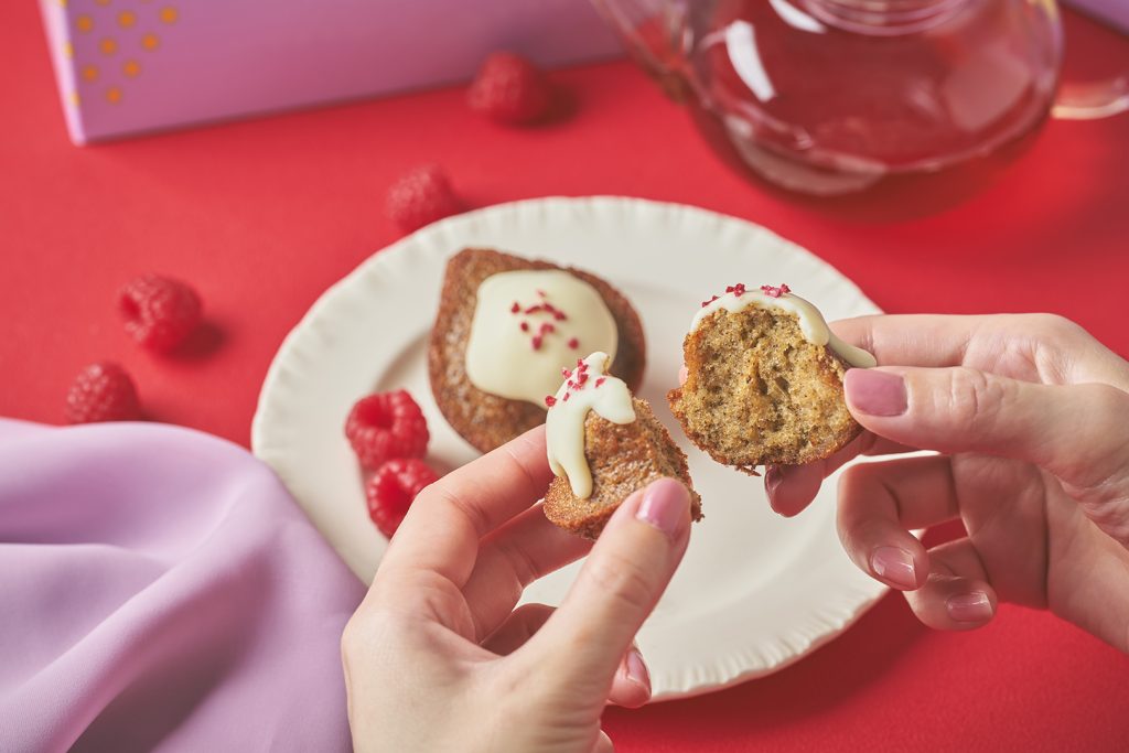 紅茶専門店TEAPOND(ティーポンド)の茶葉を使い、独自の製法で仕上げたケーキです。ベルガモットオイルで香りづけした人気銘柄アールグレイ リバティをたっぷり生地に練り込み、ドロップ型に焼き上げました。仕上げにラズベリーシロップにくぐらせ、ホワイトチョコとフリーズドライラズベリーをトッピングし、見た目も華やかな彩と食感が加わった商品です。